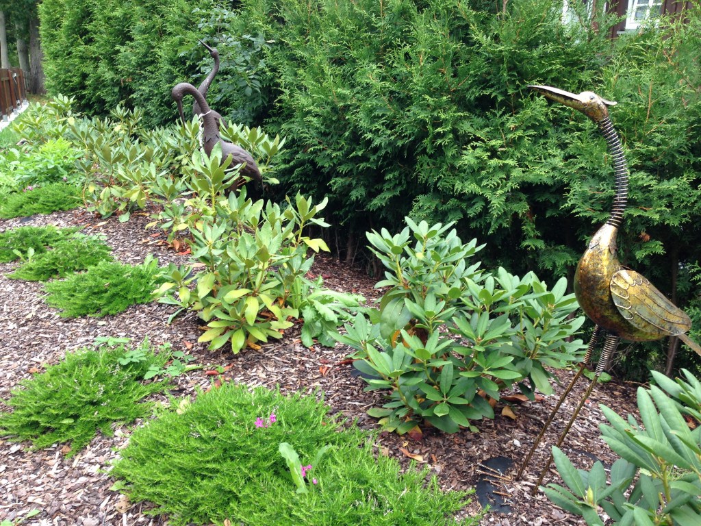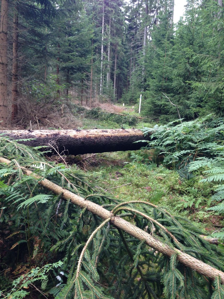Po 12km narážíme na první lavičku a hned ji využíváme k odpočinku – posledních pár km bylo dost náročných, učíme se s GPS a hledání hraničních patníků, chytáme se do pastí mokřadů, často se vracíme, trocha se ztrácíme. Na dvacátém km vylézáme na nějaký čas z lesů a míjíme různá německá stavení se spoustou zajímavé plechové zvířeny – v kýčích jsou němci prostě nepřekonatelní.